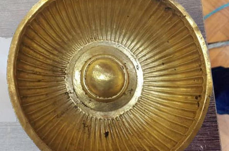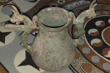 These vases, a shiny bowl and jugs with sculptures were discovered in a burial chamber in the Middle East.